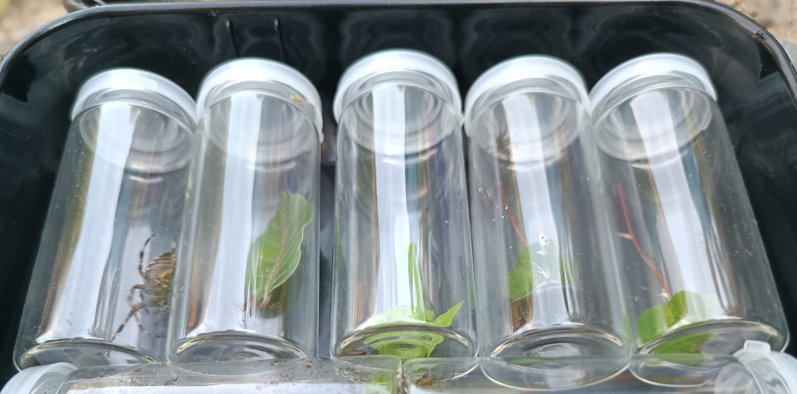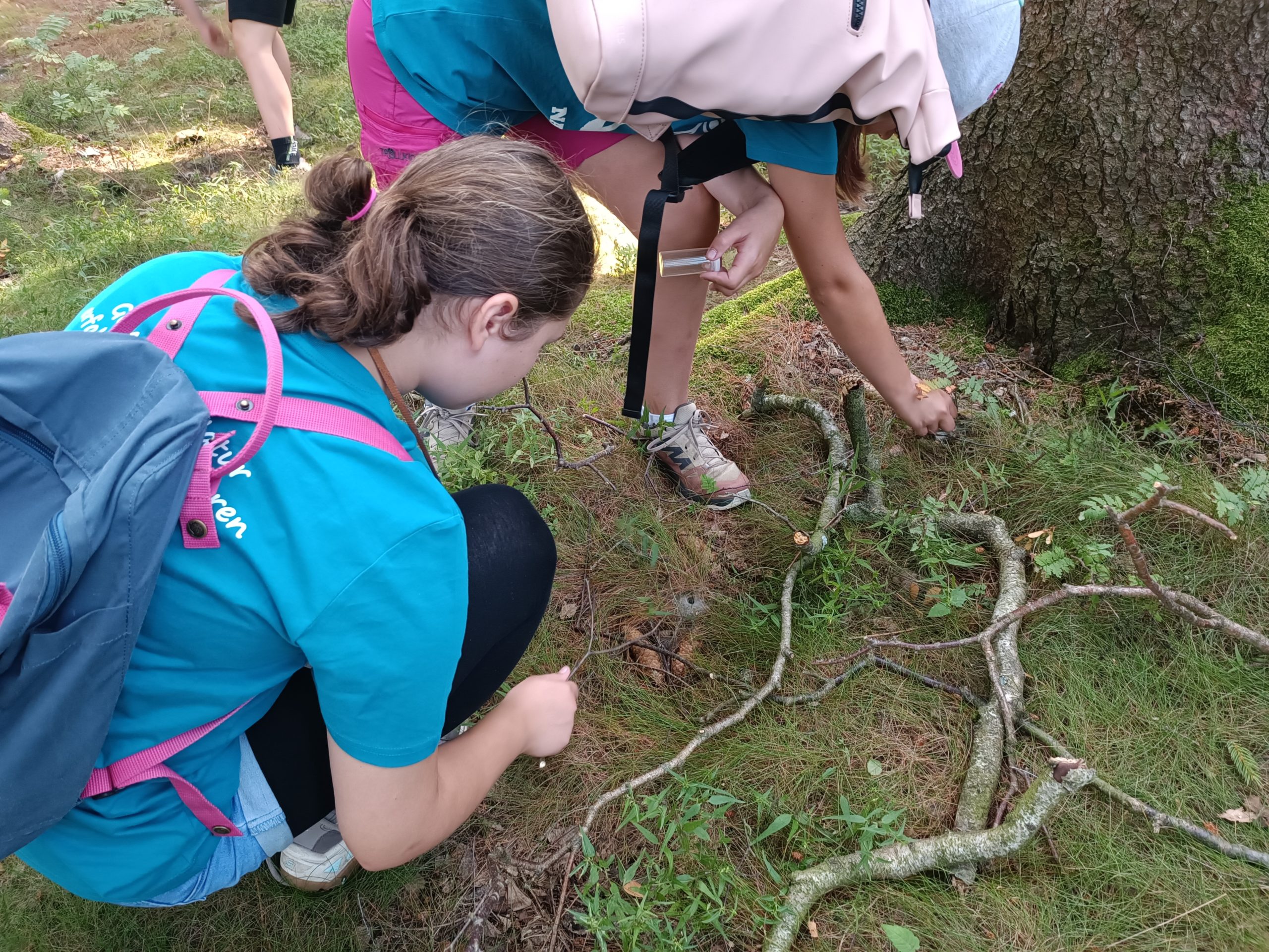 Vom 15. bis 17. August 2023 war Spinnenzeit, genauer Webspinnenzeit! Warum die flinken Achtbeiner so viel Angst und Unmut bei vielen Menschen hervorrufen, konnten die Nachwuchsforscher*innen unseres dreitägigen Camps nicht nachvollziehen, ließen sie doch schon zu Beginn Weberknechte – die im Übrigen nicht zu den Webspinnen gehören – über Arme und Gesicht krabbeln. In den drei Camptagen tauchten die Jugendlichen tief ins Thema Spinnen ein: Begleitet von den beiden Spinnenexperten Dr. Detlef Tolke und Maximilian Schweiger gingen sie mehrfach auf Spinnenpirsch, erfuhren, wo die kleinen Raubtiere leben, wie sie Nahrung erbeuten, wozu Spinnenseide genutzt wird, wie Spinnennetze gewebt werden und wie die Paarung der Spinnen abläuft. Beim Blick durchs Binokular wurden kleine Details der oft unscheinbaren Krabbler dann ganz groß: Die zumeist acht, durchaus unterschiedlich angeordneten Augen, acht mehr oder weniger behaarte Gliedmaßen, Giftklauen, imposante Zeichnungen auf Vorder- und Hinterleib. Das Bestimmen fiel dann plötzlich gar nicht mehr so schwer, vor allem nachdem die Teilnehmerinnen die Handhabung eines Bestimmungsschlüssels kennengelernt und diesen systematisch und mit Begeisterung angewendet haben. Eine Nachtwanderung führte die Spinnenforscherinnen entlang des Naturlehrpfades vorbei an Netzen und Gespinsten. Bei Tag ging uns sogar ein Exemplar des Ammendornfingers ins Netz, eine bei uns eher selten vorkommende und die einzige Spinne, die auch dem Menschen eine recht schmerzhafte Wunde zufügen kann. Bei einem gemeinsamen Lagerfeuer lauschten wir Spinnengeschichten und dachten uns selbst – zum Teil gruselige – Geschichten über Spinnen aus. Zum Abschluss gestalteten die Jugendlichen selbständig ein Brettspiel mit vielen Frage- und Antwortkarten, um auch anderen Spinneninteressierten das im Camp erarbeitete Wissen weitergeben zu können. Immerhin erhöhte sich die Anzahl der den Teilnehmenden bekannten Spinnenarten von fünf zu Beginn des Camps auf 32 an Tag 3, die sie im Verlauf des Camps kennengelernt haben und – mit etwas Zeit, Geduld, Artenkenntnis und Spinnenführer – nun auch bestimmen könnten.